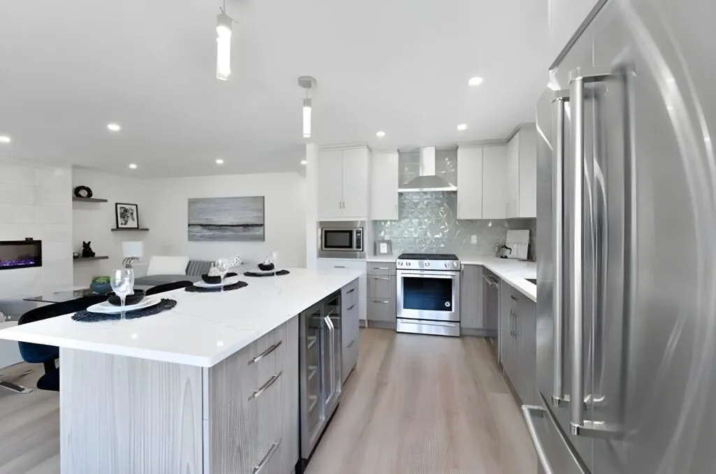 We completed a full home renovation project that transformed a dated house into a modern and stylish home. The project included a complete redesign of the layout, updated finishes, and new cabinetry and furnishings throughout.